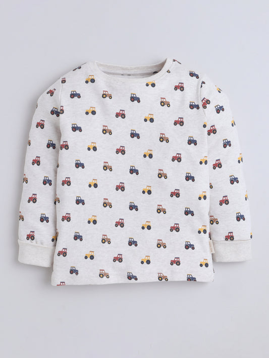 Baby Nation Kids Printed Cotton Night Suit Set- Creme Tractor