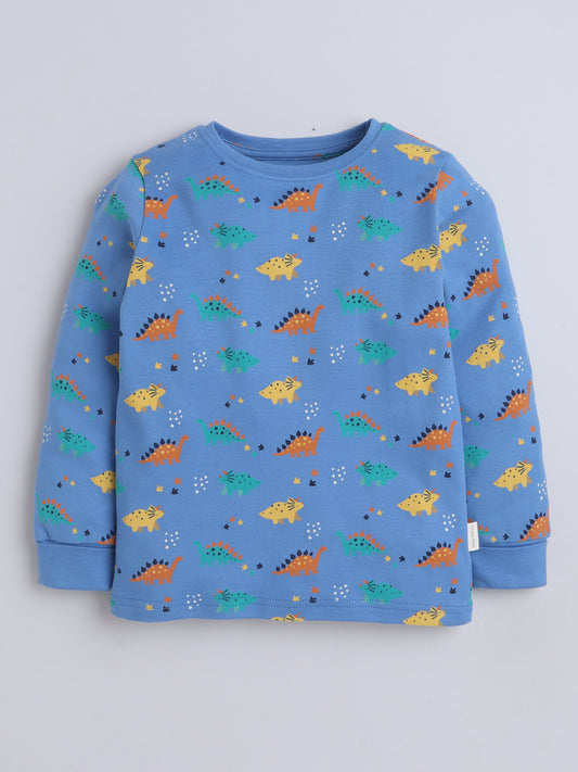 Baby Nation Kids Printed Cotton Night Suit Set- Blue Dino