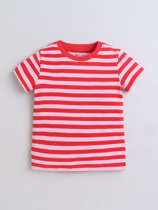 Baby Nation Cotton Knit Half Sleeves with Auto Striped T-Shirt - Red