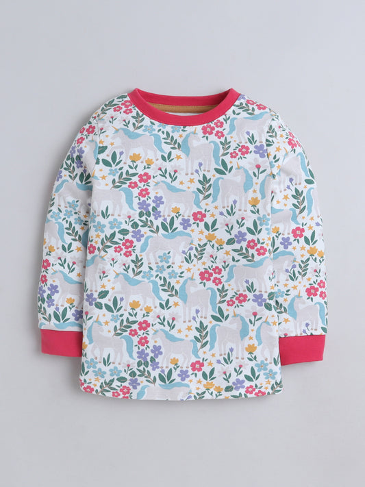 Baby Nation Kids Printed Cotton Night Suit Set- White Unicorn