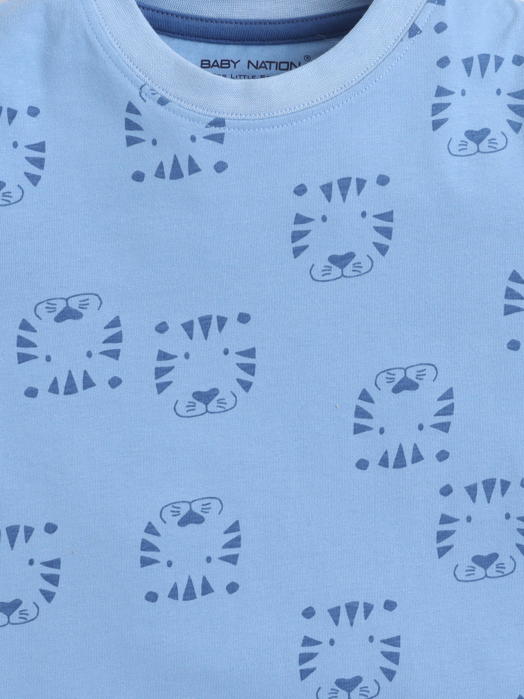 Baby Nation Cotton Knit Half Sleeves with Tiger Face Print T-Shirt - Blue