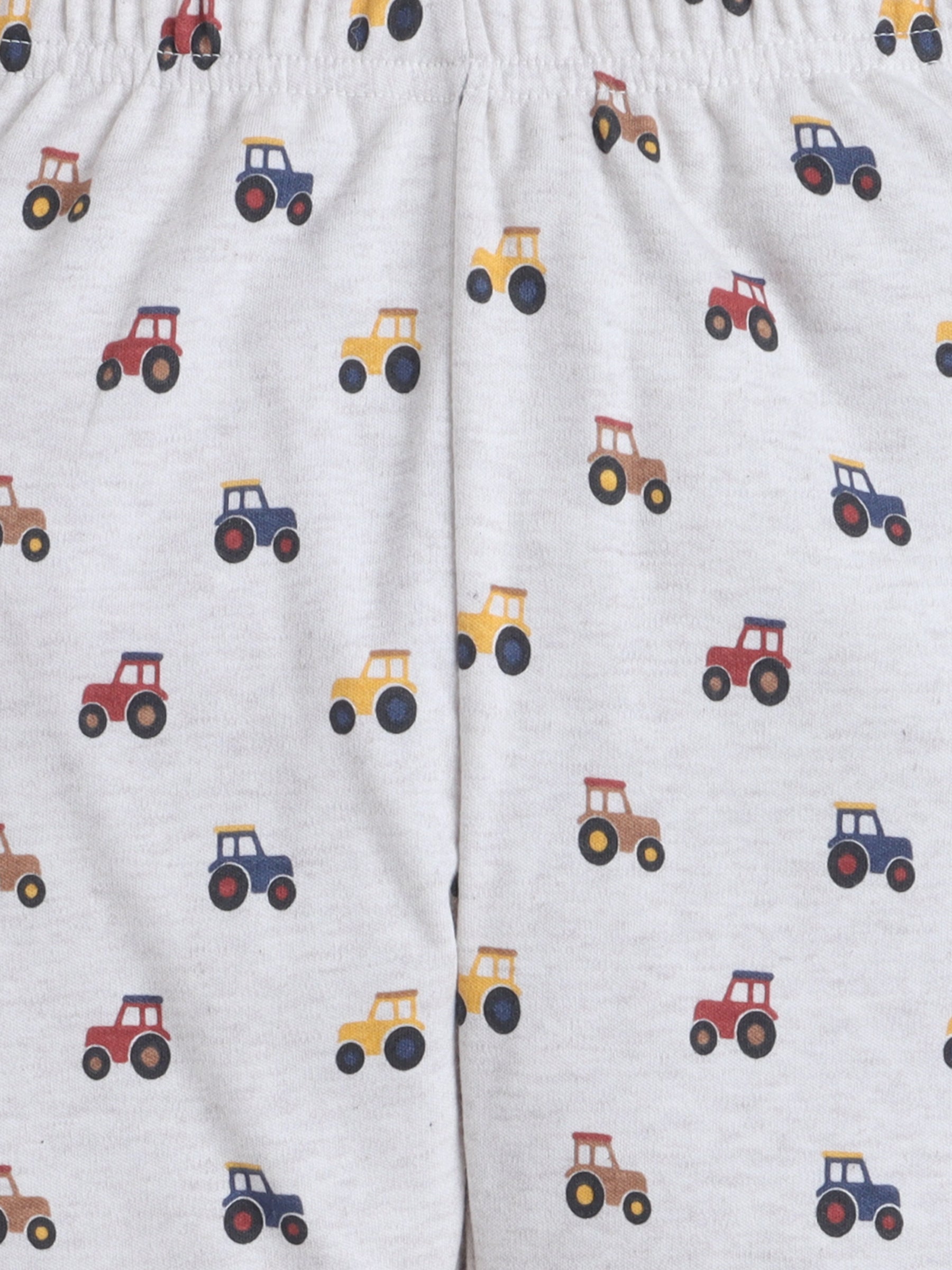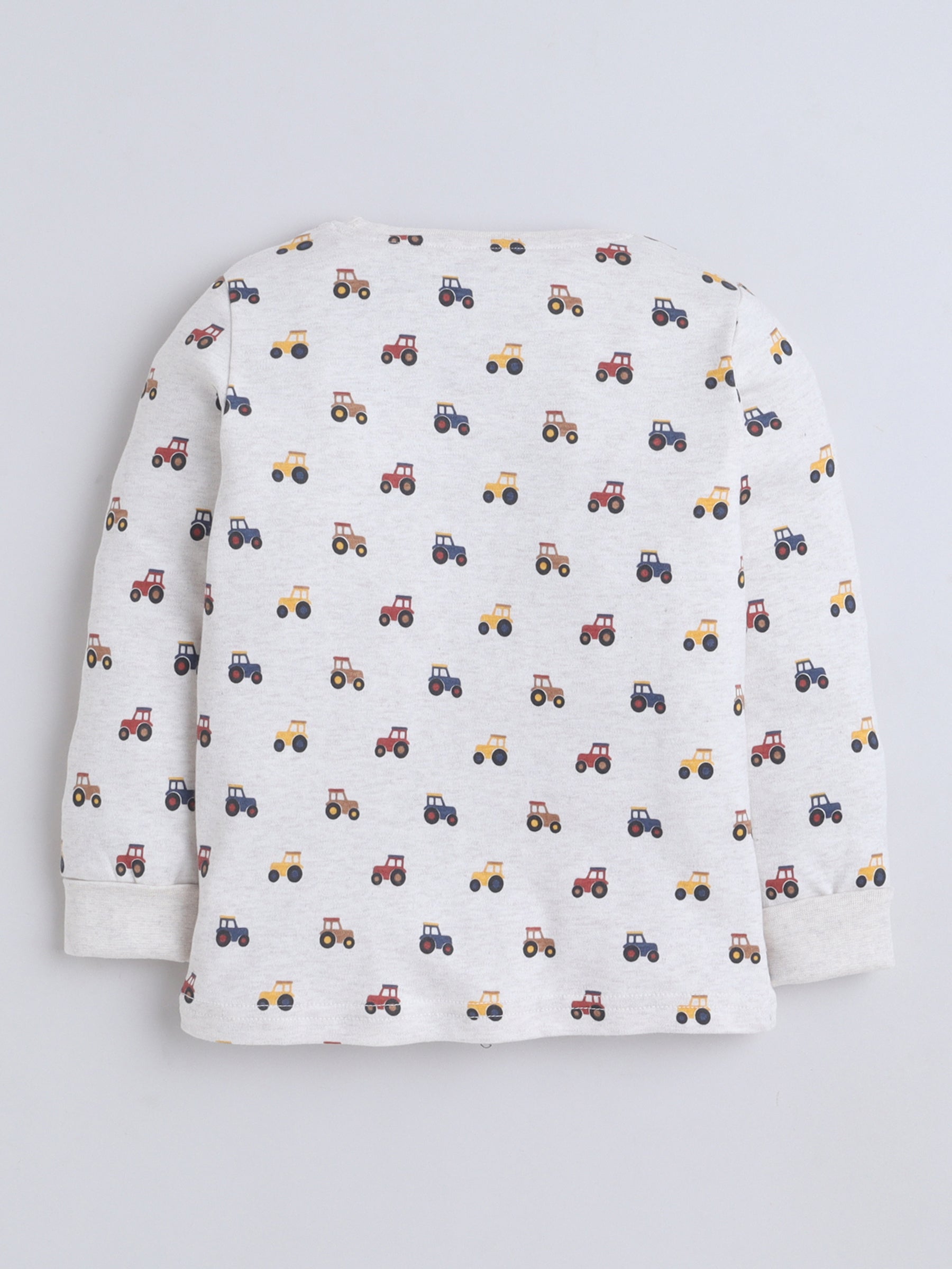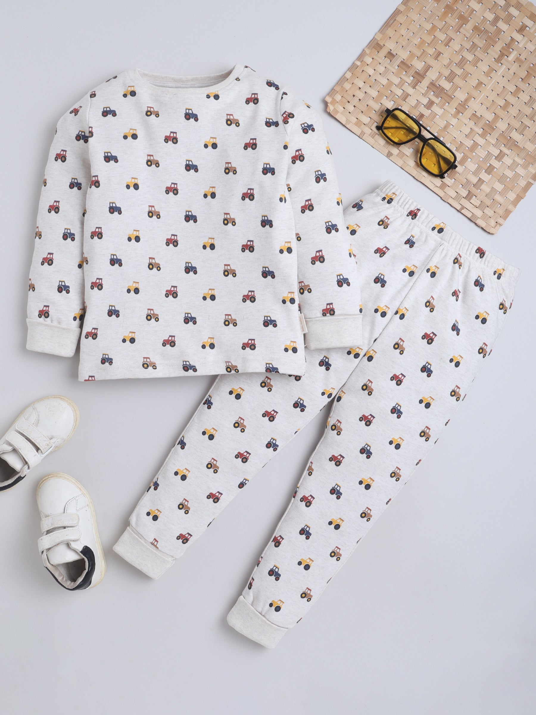Baby Nation Kids Printed Cotton Night Suit Set- Creme Tractor