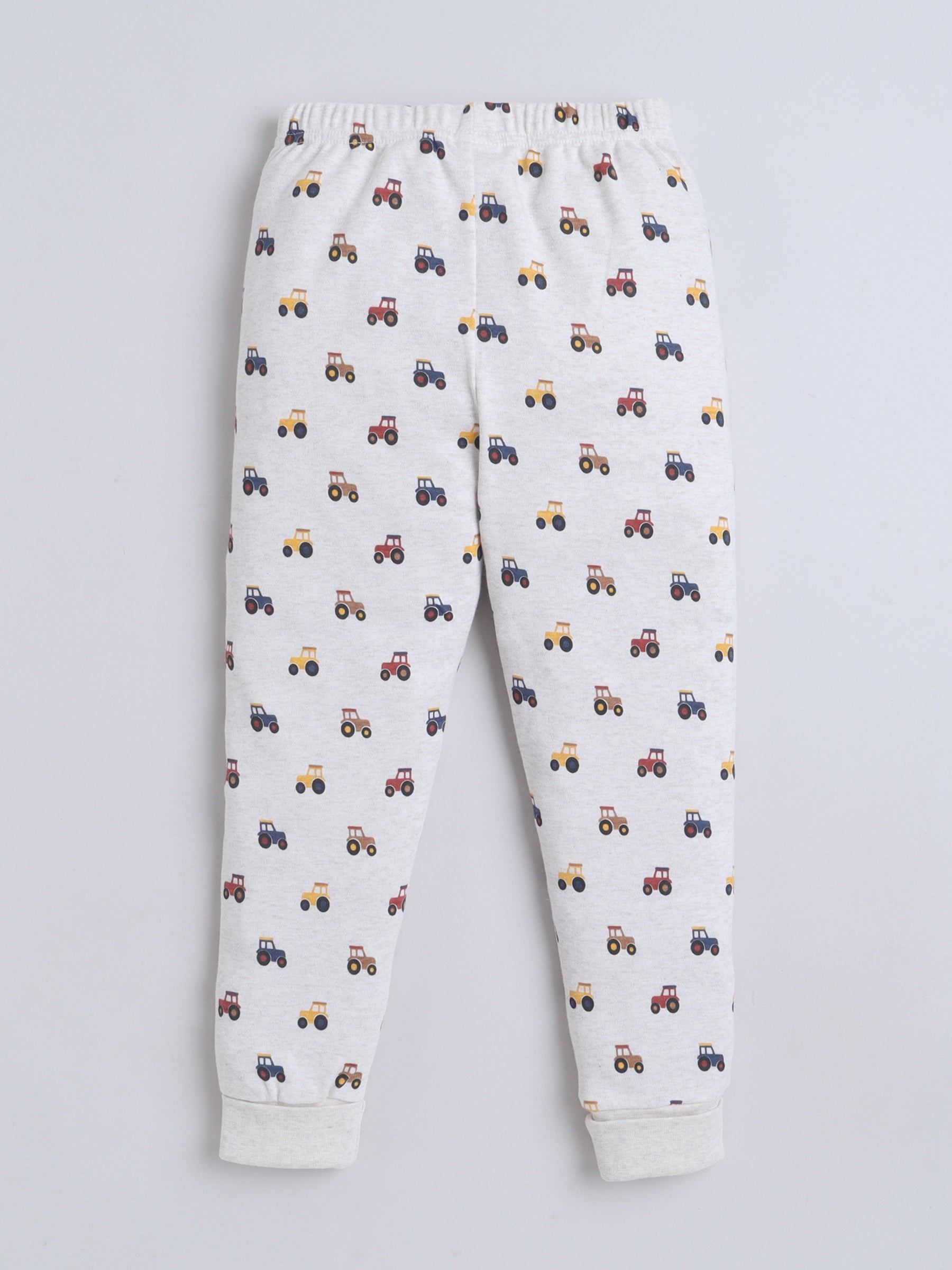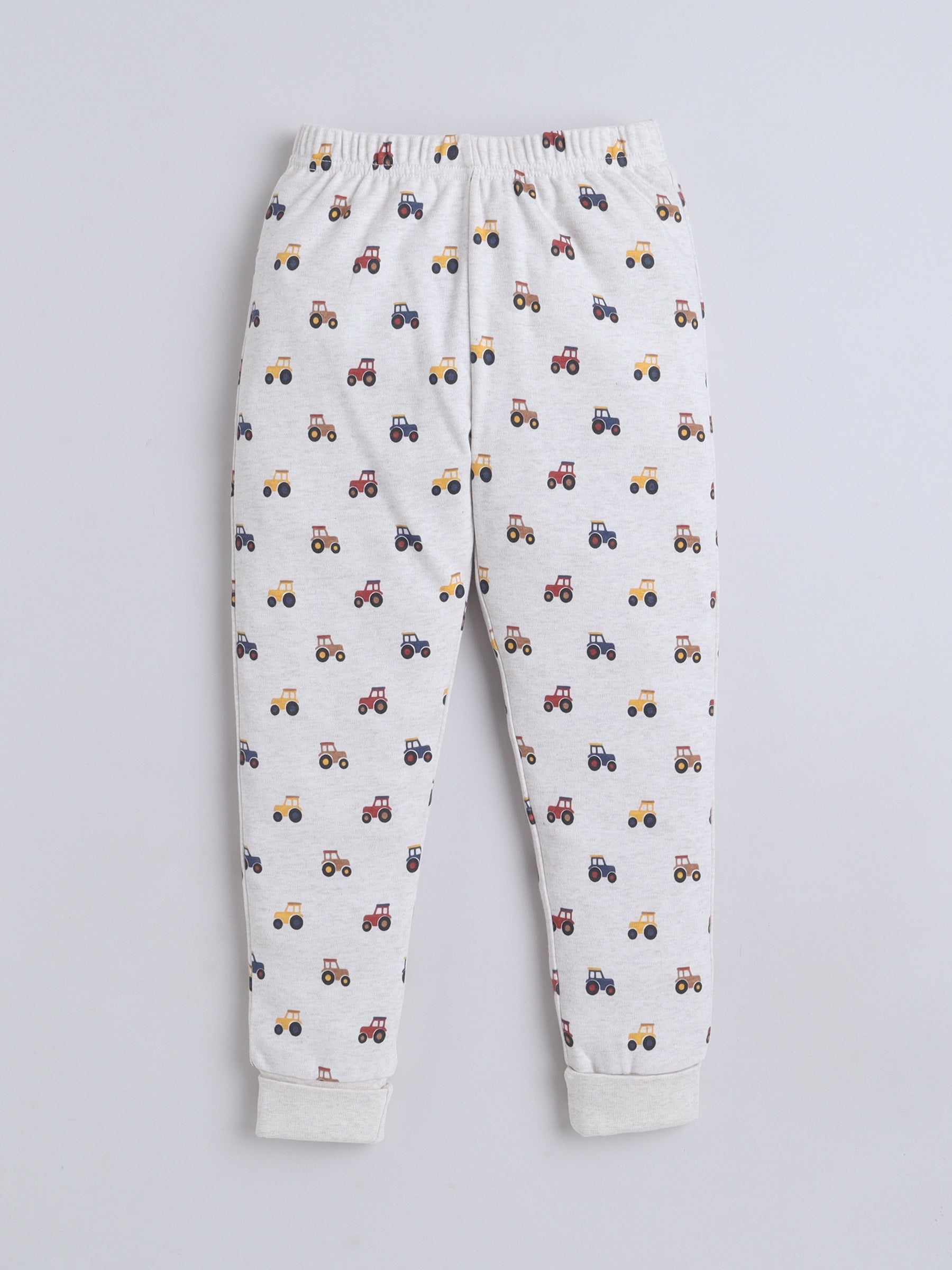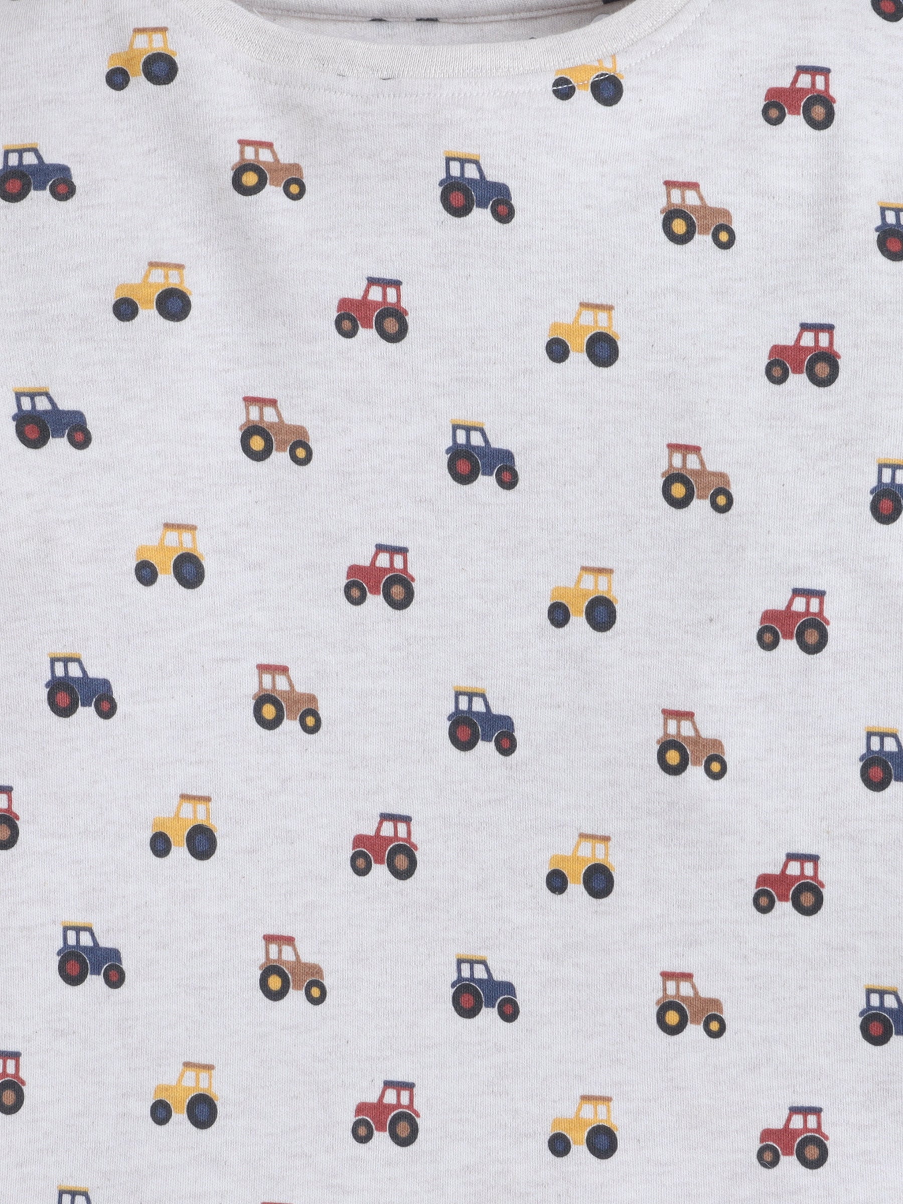 Baby Nation Kids Printed Cotton Night Suit Set- Creme Tractor