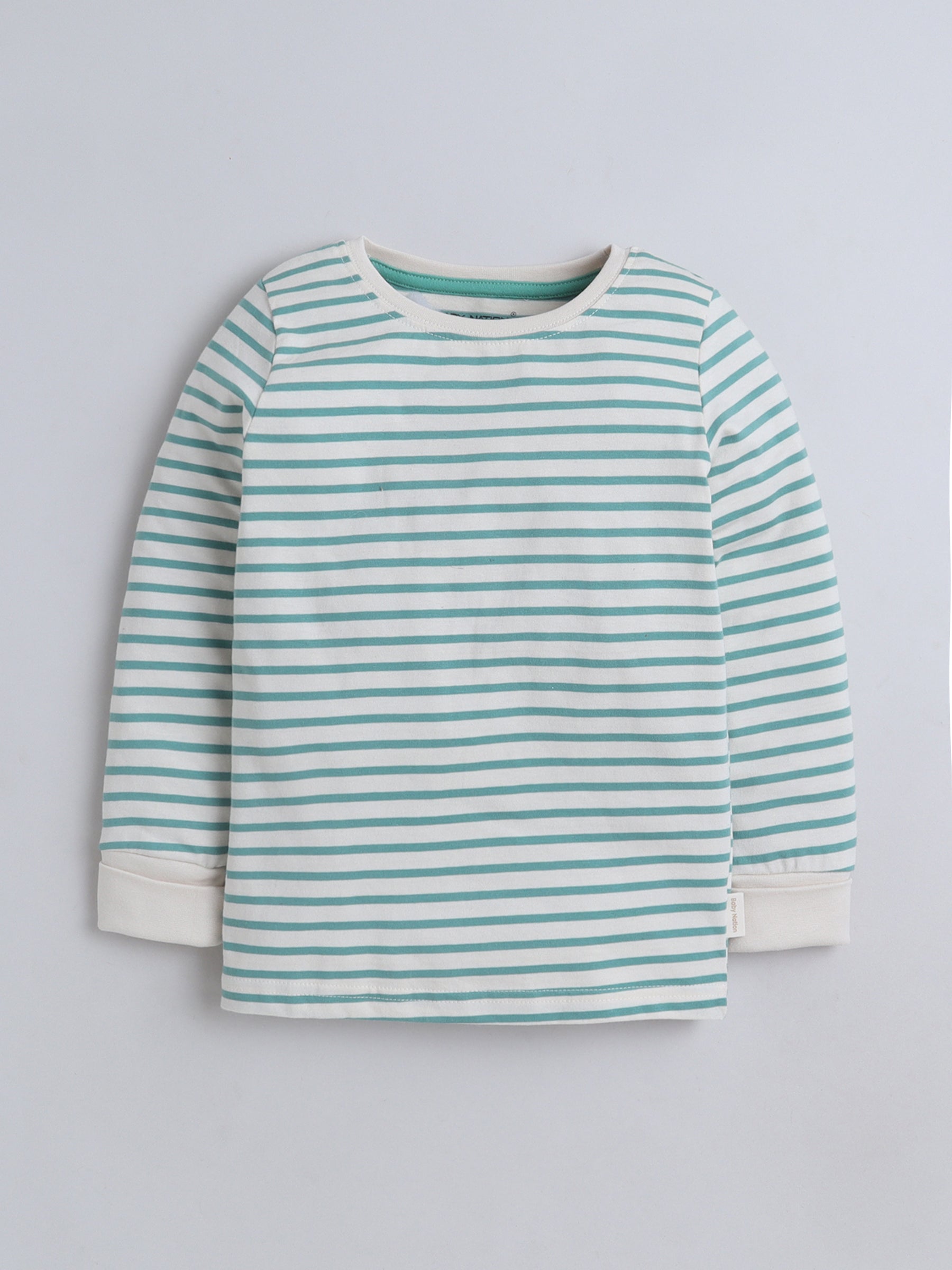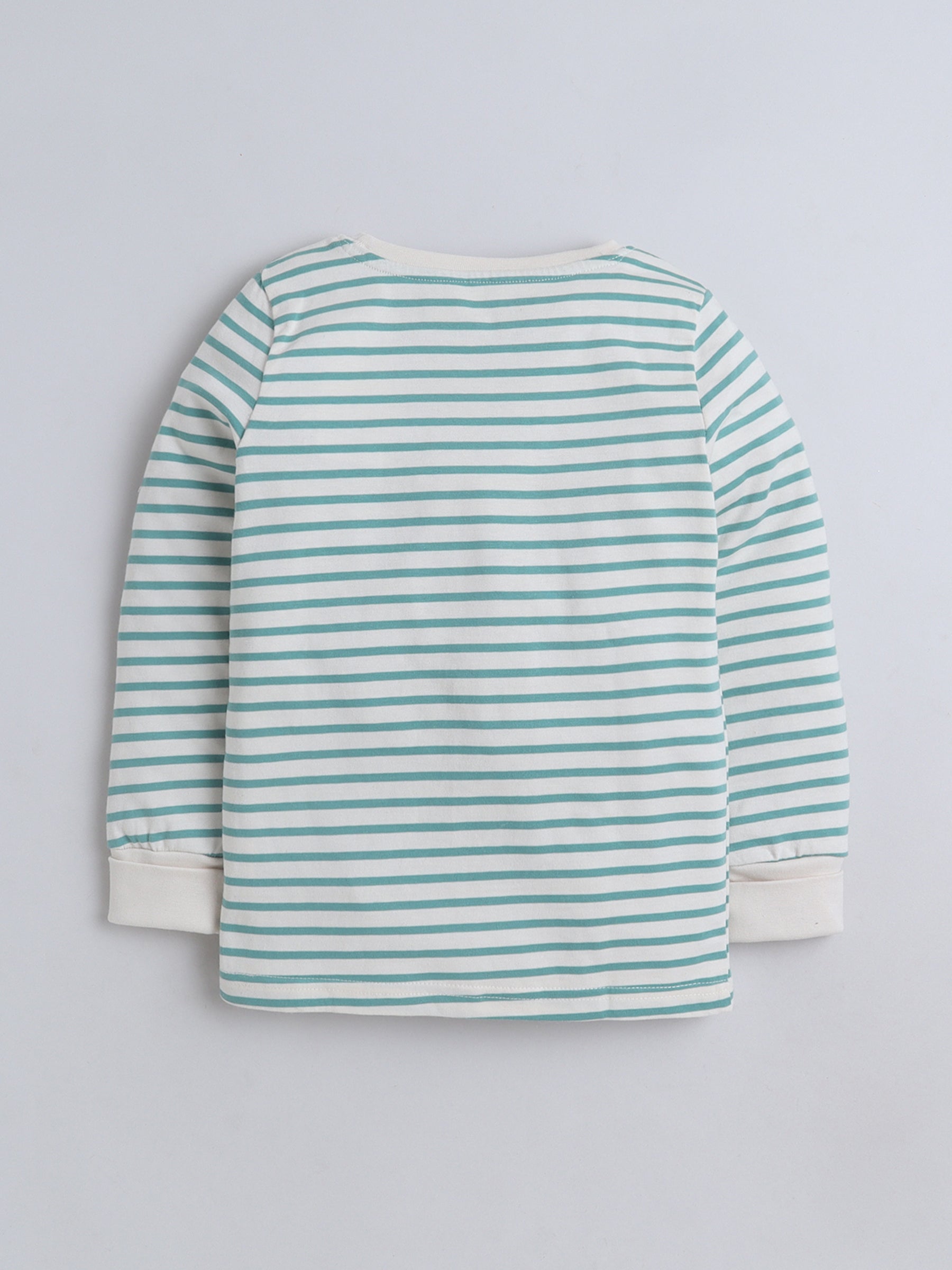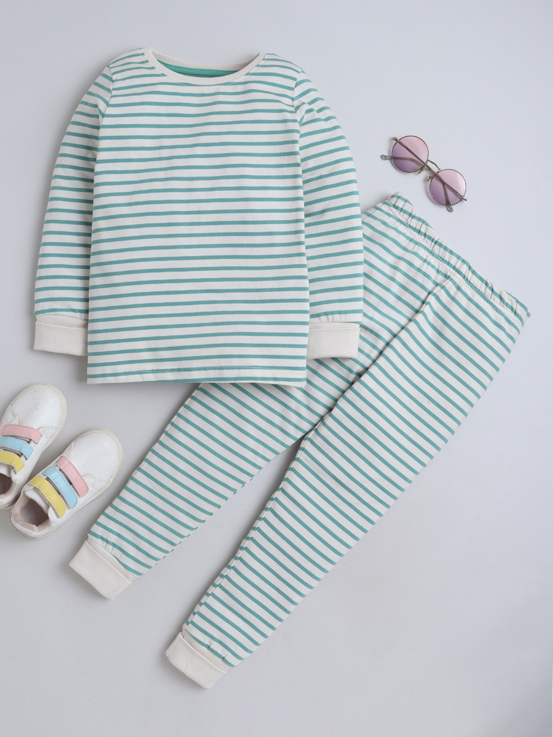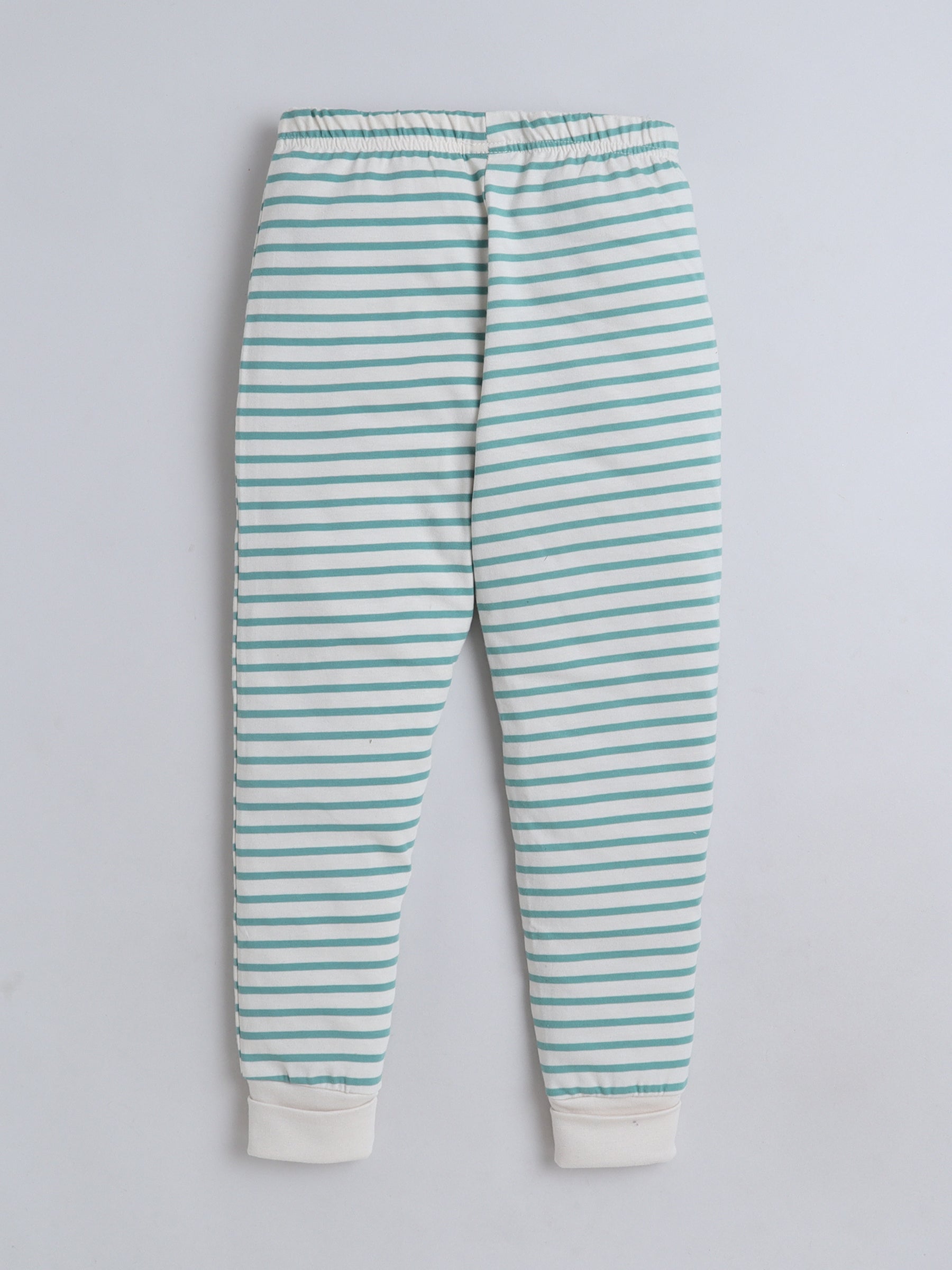 Baby Nation Kids Printed Cotton Night Suit Set- Green Stripes