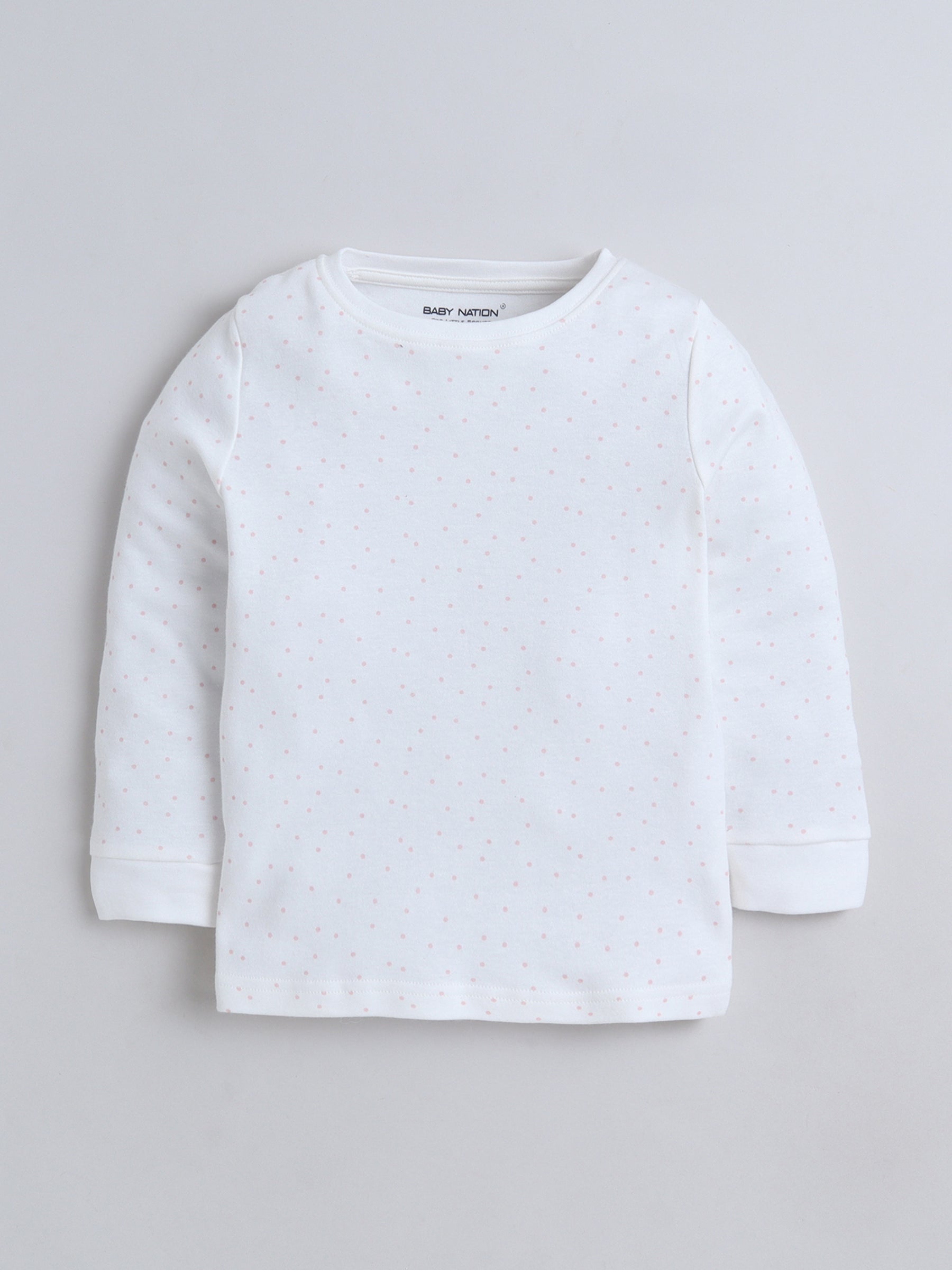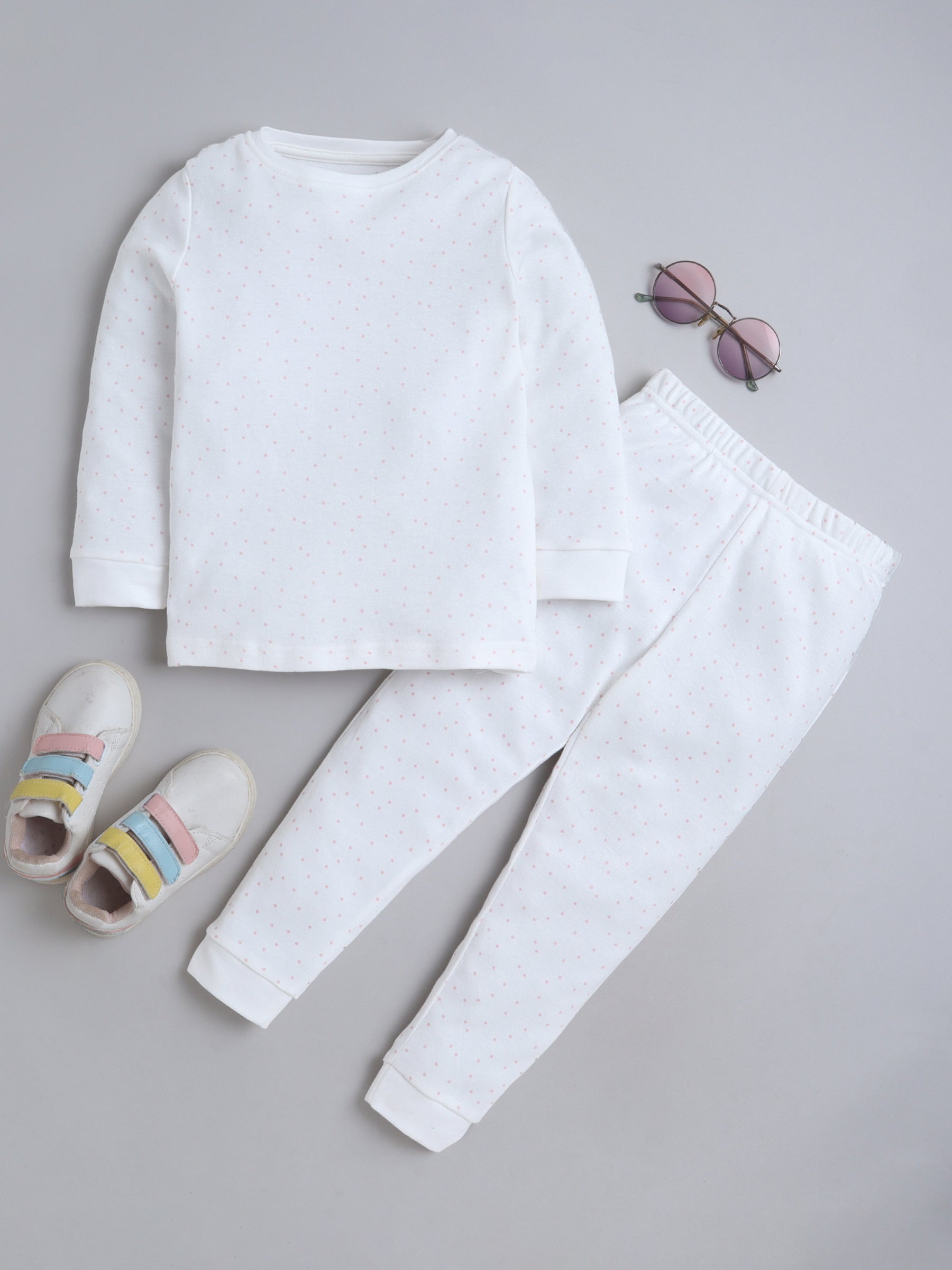 Baby Nation Kids Printed Cotton Night Suit Set- White Dot