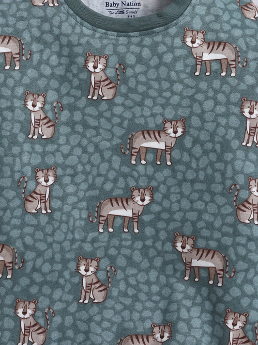 Unisex Kids Sweatshirt – Green with Cute Tiger Print