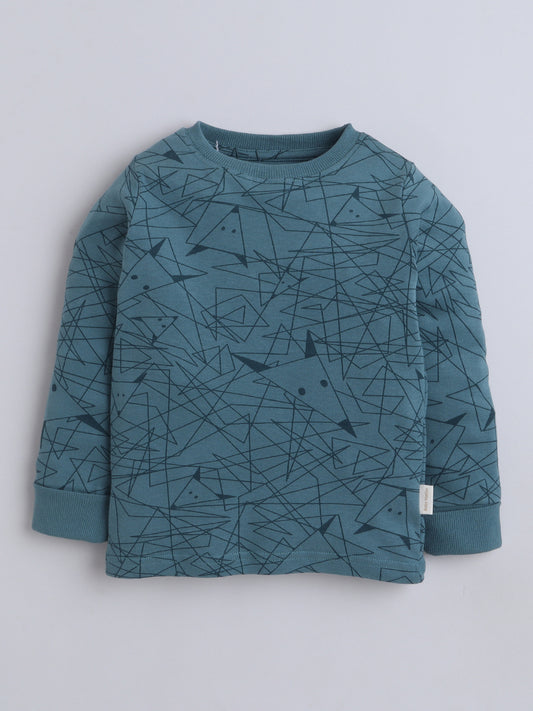 Baby Nation Kids Printed Cotton Night Suit Set- Dark Green Fox
